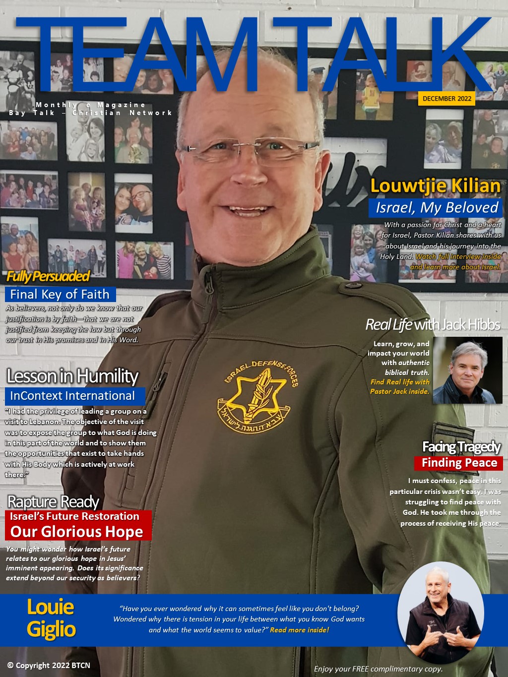 I would personally like to thank Pastor Louwtjie for the impact his has made in my life. By his authentic teachings in line with the Word of God, his humble approach to the Gospel of Jesus Christ and with the guidance of the Holy Spirit within, he made me view the Word of God and Israel through different eyes.